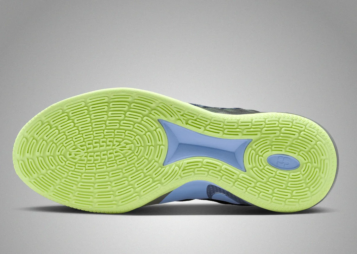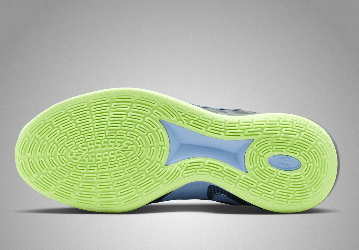 このモデルの質感は細部にわたる工夫が感じられます。メッシュ構造のアッパーは軽量かつ通気性に優れ足を包み込むようなしなやかさを実現しています。さらにサイドのプリーツ部分はケーブル構造がアクセントとなり視覚的な魅力だけでなく高いサポート性を提供しています。ソールの表面はベアリーボルト色の多方向トラクションパターンが特徴的でそのデザインは滑りにくくストリートパフォーマンスにおいても卓越したグリップ力を発揮します。