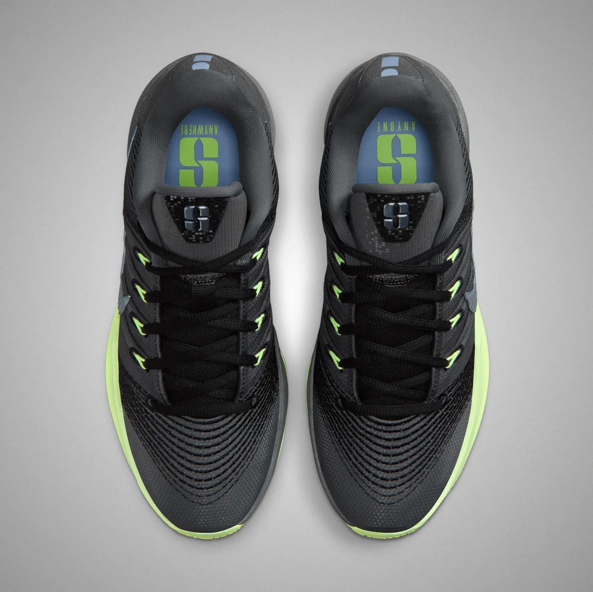 シルエットは流線型で足に寄り添う自然なカーブがその美しさを際立たせています。ミッドソールの厚みが持つ絶妙なラインは安定感と快適性を両立させておりカジュアルにもパフォーマンスにもふさわしいスタイルを感じさせます。足元を彩るこのシューズはプレイヤーの動きの躍動感を損なわず日々のストリートでも映えるモダンで存在感のある外観を備えています。