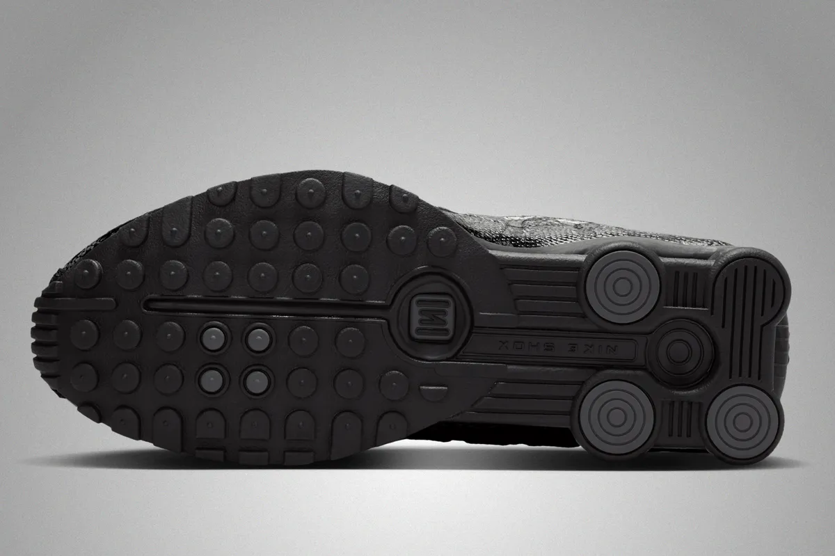ナイキ ショックス R4はナイキの中でも独自のクッショニング構造を前面に打ち出したシリーズとして位置づけられてきました。本モデルはその特徴的な構造を踏襲しつつ表層の意匠によって現代的な解釈を加えています。過去の機能的な文脈を背景に持ちながら視覚表現はより装飾的に整理されています。