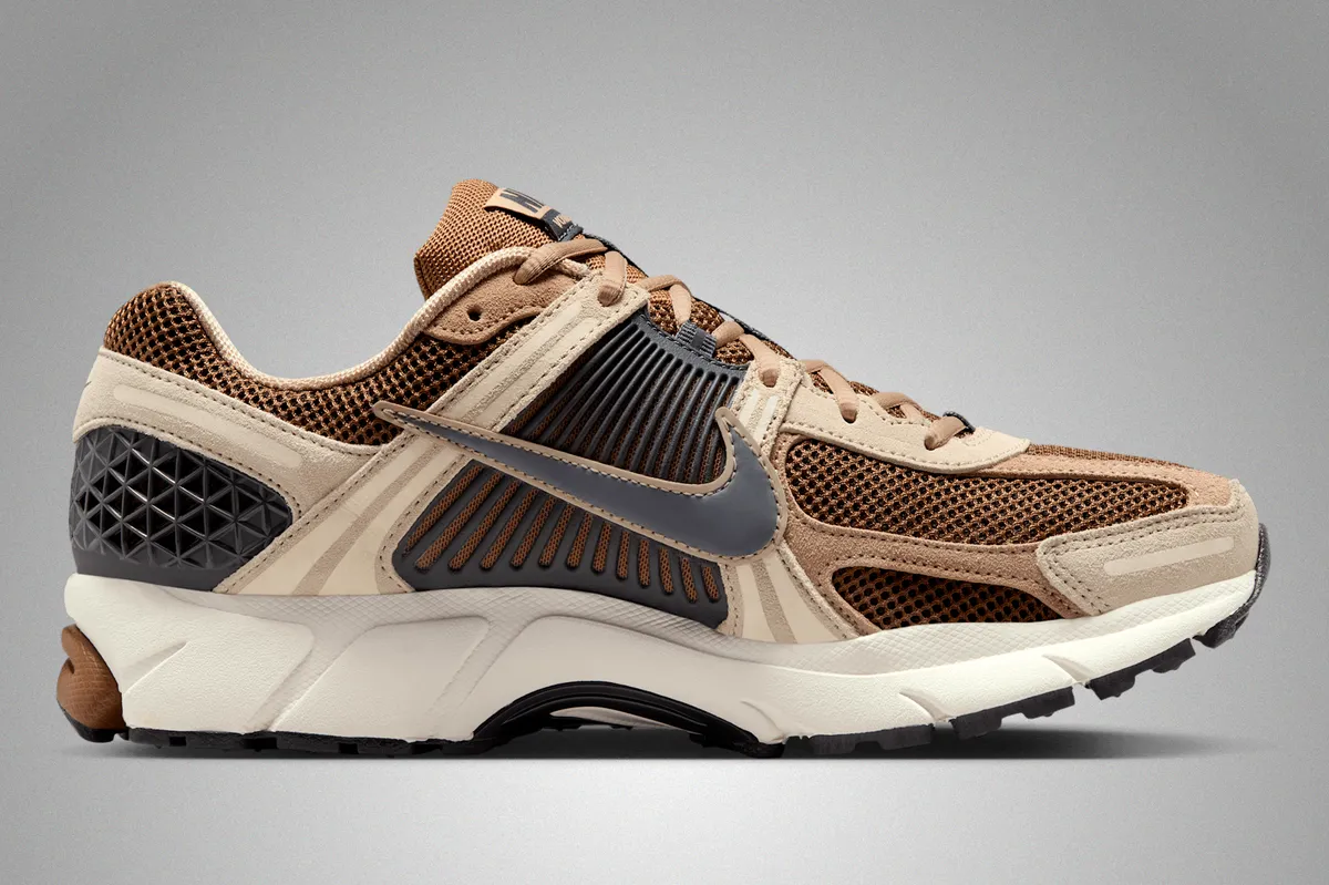 ナイキ ズーム ボメロ 5 ライトブリティッシュタン/ブリティッシュカーキ/リネン/ダークスモークグレーはクラシックなランニングシルエットを再構築した一足です。