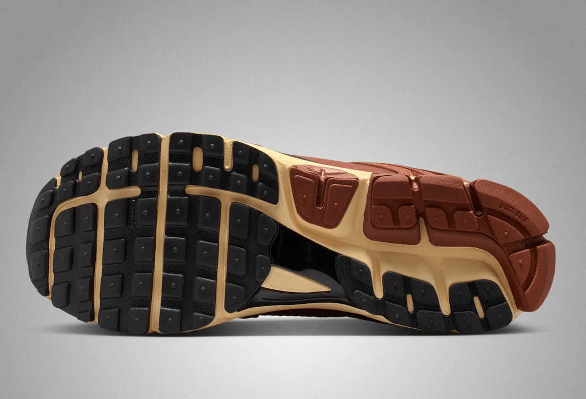 加えてこのスニーカーの特筆すべき点はそのシルエットです。ズーム ボメロ 5の特徴的な形状は重厚さと軽やかさを巧みに兼ね備えています。ミッドソール部分にはセイルカラーが採用されマルチレイヤー構造による陰影が見る角度によって異なる印象をもたらします。「ズーム テクノロジー」を搭載したアウトソールはクッション性と耐性を提供しつつブラックラバー部分がストリート環境での機能性を強化します。その底部のパターンはグリップ力を高めるデザインです。