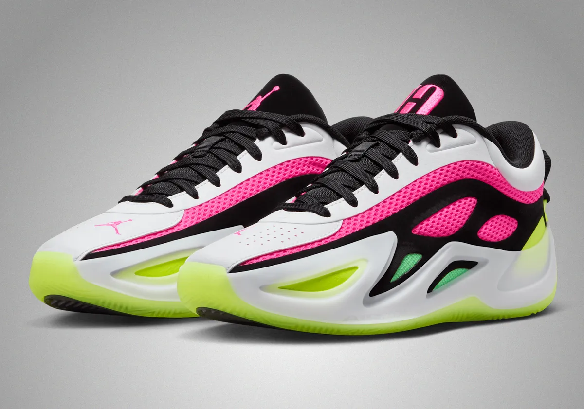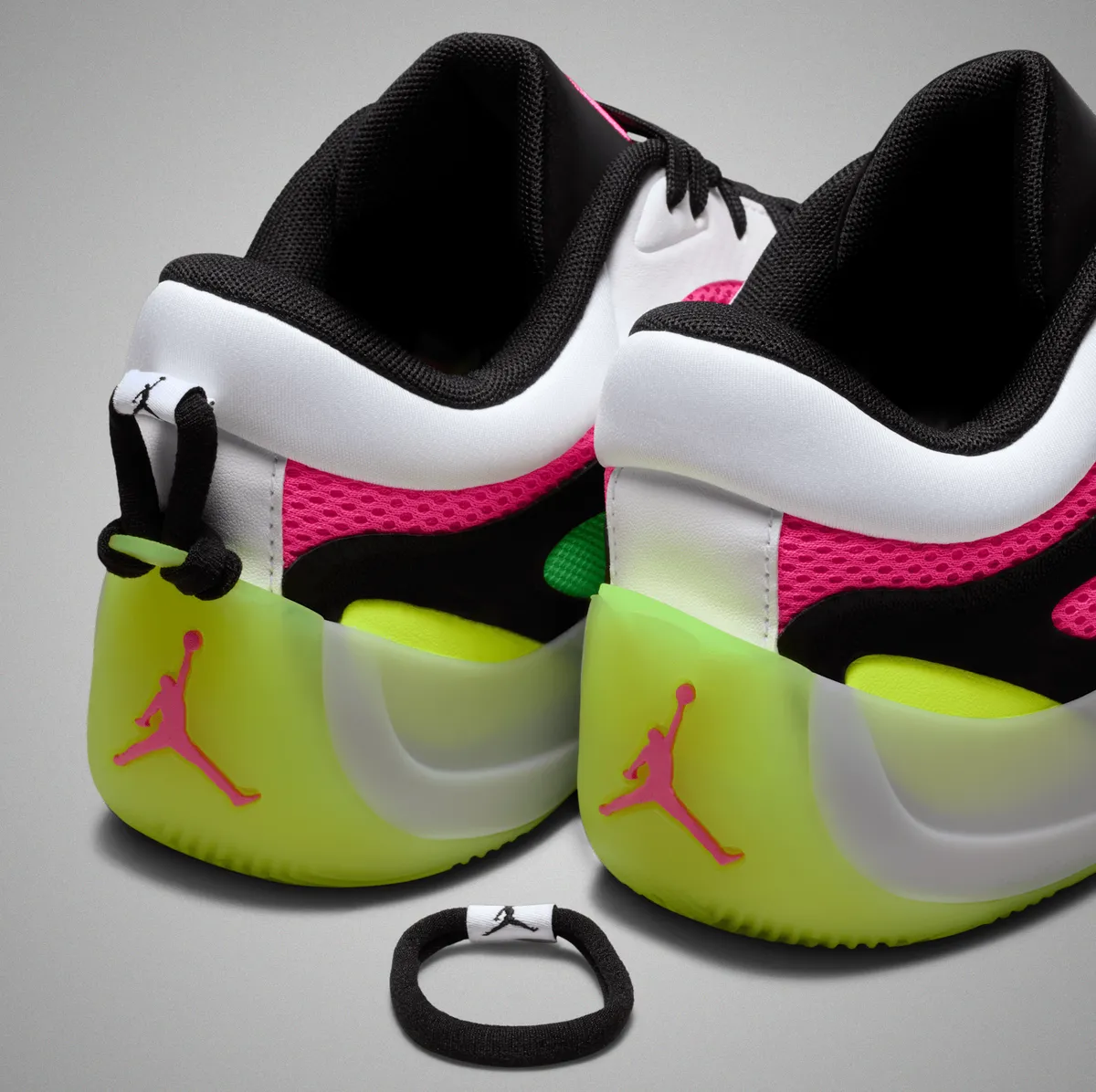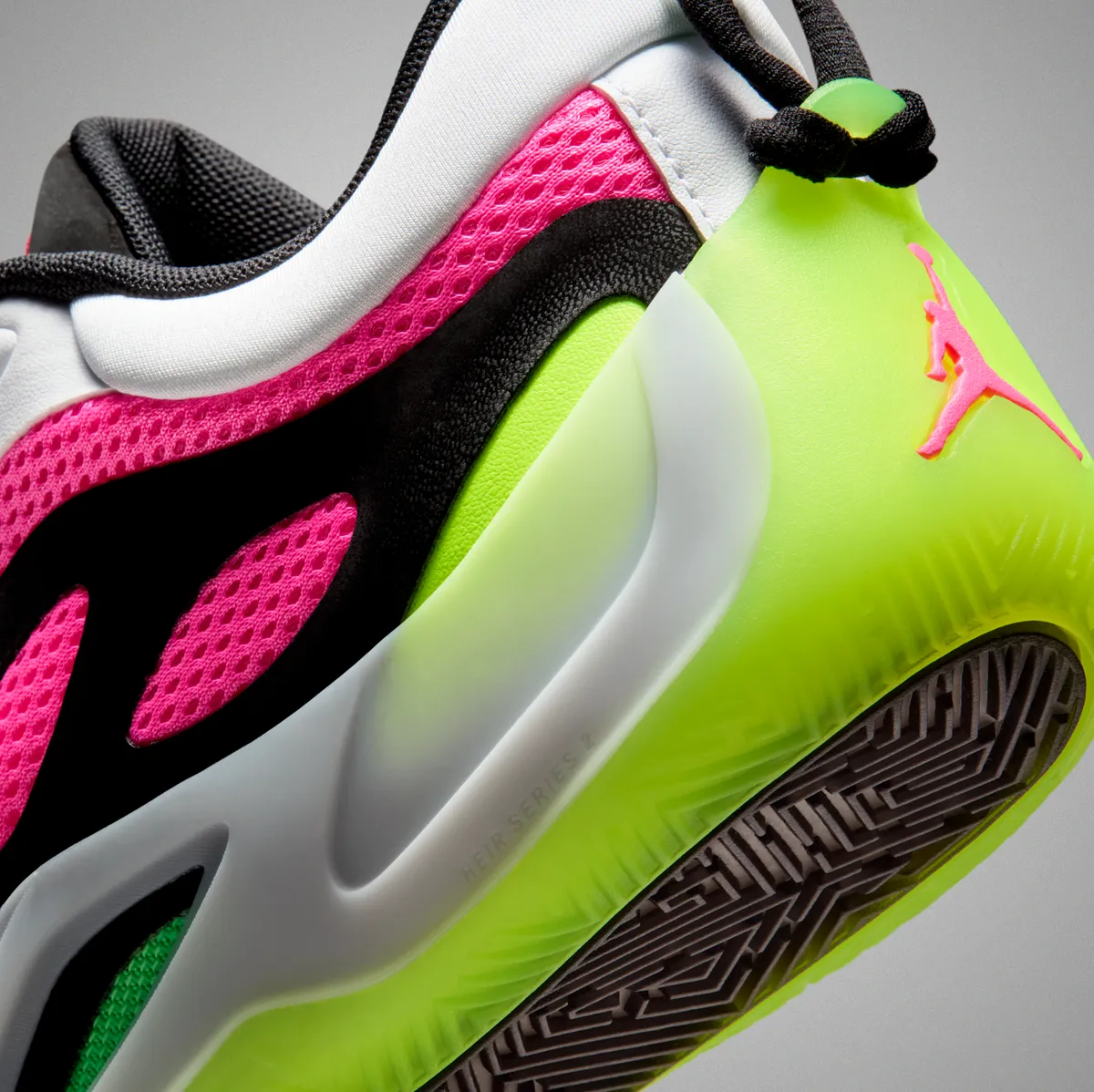 ジョーダン ブランドが提案する「ジョーダン エアー シリーズ 2 PF」は鮮やかな色彩と革新的なフォルムが目を引く一足です。ホワイト/ブラック/ライトルシッドグリーン/ピンクブラストのカラーリングは視覚的な刺激に満ちておりコート上だけでなくストリートでも際立つ存在感を放ちます。