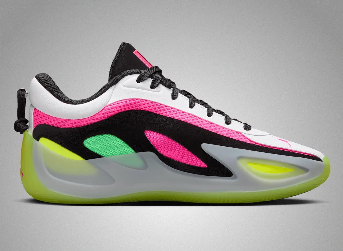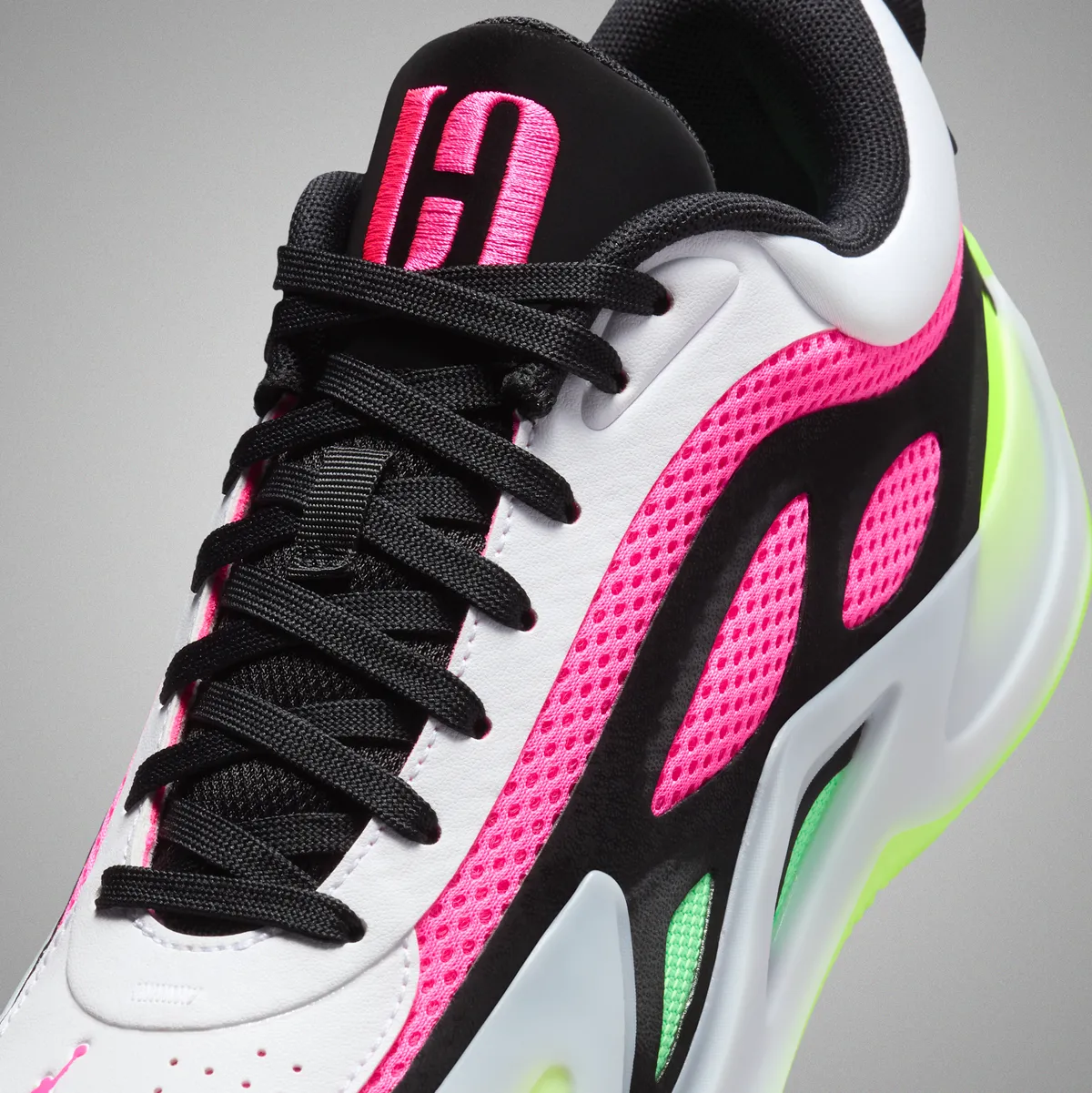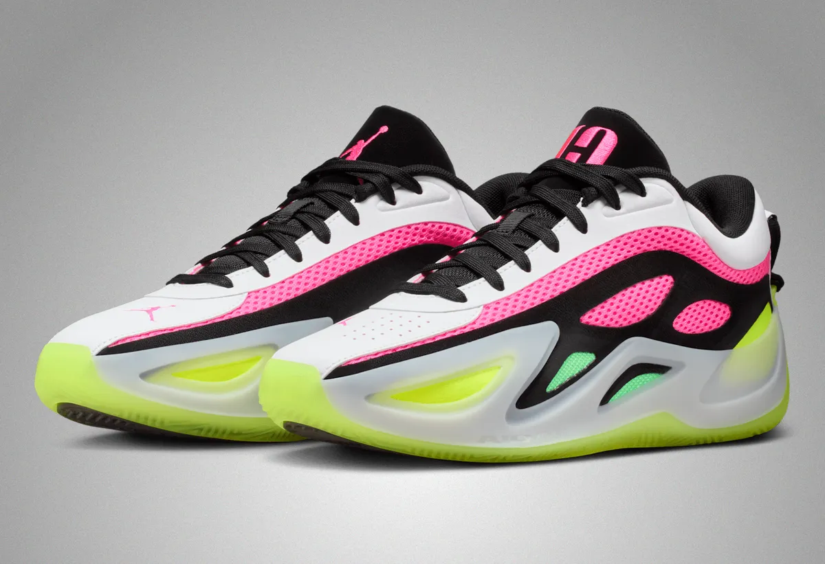 ジョーダン ブランドが提案する「ジョーダン エアー シリーズ 2 PF」は鮮やかな色彩と革新的なフォルムが目を引く一足です。ホワイト/ブラック/ライトルシッドグリーン/ピンクブラストのカラーリングは視覚的な刺激に満ちておりコート上だけでなくストリートでも際立つ存在感を放ちます。
