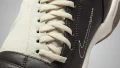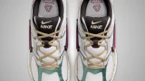 足元を支えるアウトソールにはフォトブルーの鮮烈な青が使われています。このラバーの底部は足裏にかかる圧力を分析したデータに基づいた独自のパターンが刻まれておりまるで指紋や地形図のような複雑な溝が細かく走っています。この複雑な凹凸がストリートのコートにおいても地面を確実に捉える高いグリップ性能を視覚的にも表現しています。履き口はローカットの設計となっており足首周りの自由度を高めながら内部のフォトブルーのライニングが足をやさしく包み込みます。