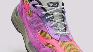 視覚的な特徴として際立つのはアッパーを構成する素材の重なりが生む奥行きのある表情です。上質なピッグスエードと通気性に優れたメッシュパネルが複雑に組み合わされ同系色のなかでも異なる質感が共存しています。カラーリングはスニーカーファンからの支持が極めて高い「トリプルブラック」で統一されました。