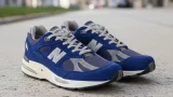 全体のシルエットはつま先からかかとにかけて流れるような曲線を描いており非常にシャープな印象を与えます。特に注目すべきは厚みを持たせたミッドソールの構造です。ここには高い反発性とクッション性を誇る先進の「FuelCell」が採用されており機能美がそのまま外観のデザインに反映されています。ミッドソールの側面には波打つような段差が刻まれておりこれがストリートの風景に馴染むダイナミックな動きを演出しています。履き口の周りやヒール部分には反射素材を用いたパーツや「990」の文字そしてアメリカ国旗を模したディテールが精密に配置されており細部にわたるステッチの正確さが製品の質の高さを物語っています。
