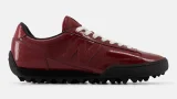 漆黒のスエード部分はしっとりとした手触りを感じさせ光を吸収するような深い黒を呈しています。一方でメッシュ部分は編み込みの隙間に陰影を宿し軽やかな空気感とともに立体的な造形美を際立たせています。サイドに鎮座する「N」のロゴは縁取りによってわずかな高低差が設けられフラットな黒の中にも構造的なメリハリを与えています。