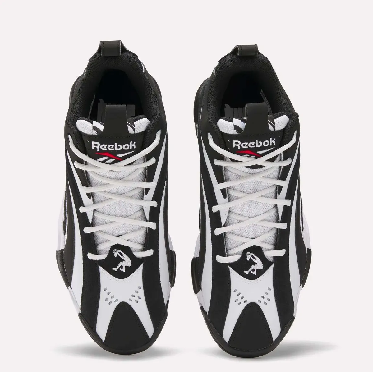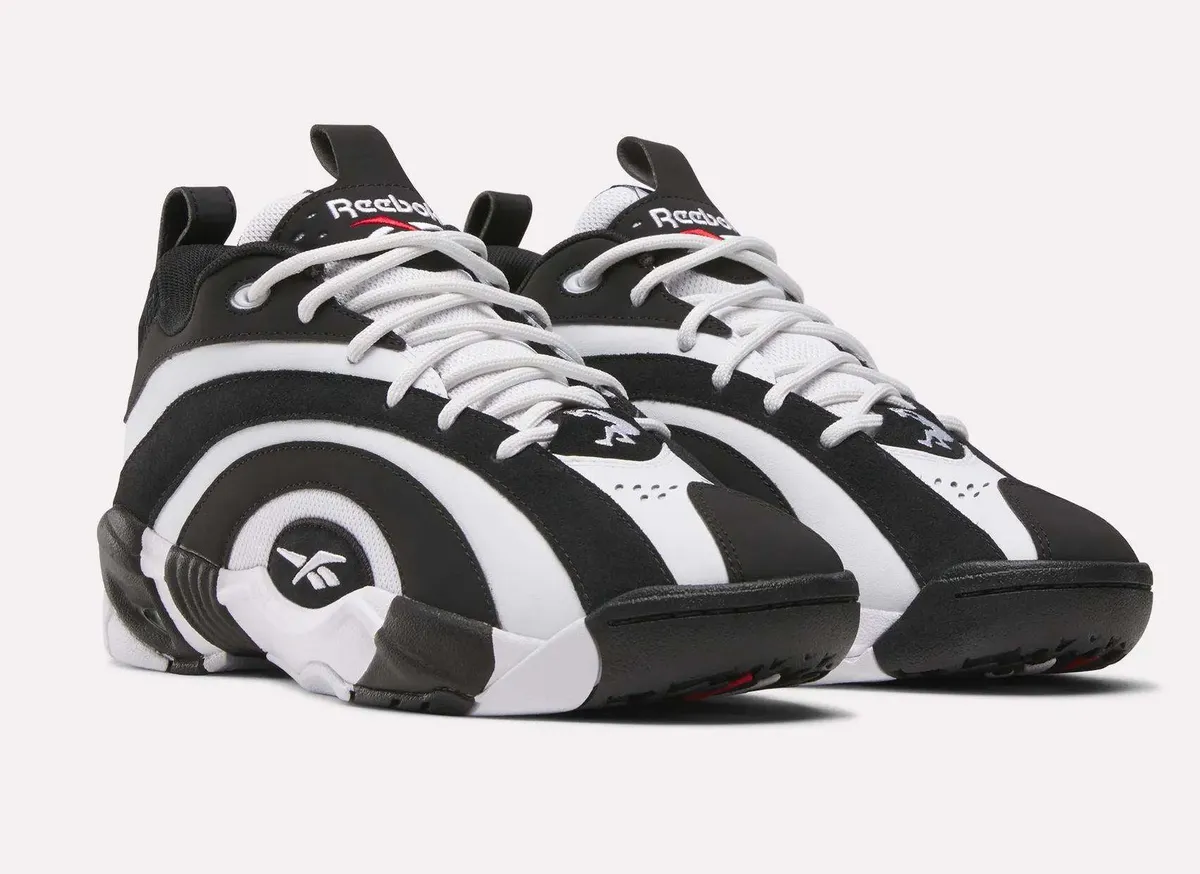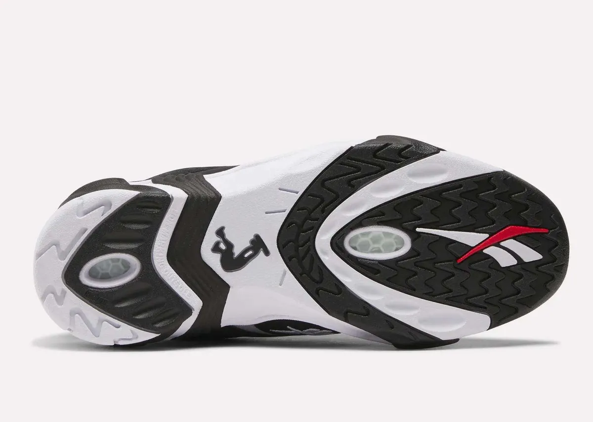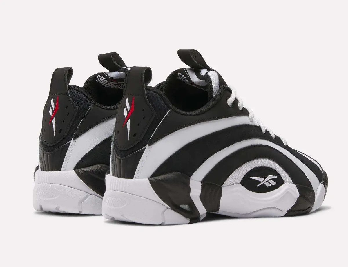 足元を支えるソールユニットもアッパーのコンセプトを忠実に継承しています。ミッドソールまで侵食するように描かれた白黒のパターンが上下の境界線を曖昧にし巨大な塊のような一体感を生み出しています。アウトソールを裏返すとそこにはリーボック独自のクッショニング技術である「Hexalite」のハニカム構造が顔を覗かせます。機能美を象徴するこのディテールと中央に配置された赤いロゴマークが見えない部分にまでこだわり抜かれた構造を物語っています。全体的なシルエットはローカットに変更されたことで足首周りに開放感が生まれボリューム感がありながらもスマートな印象にまとめられています。