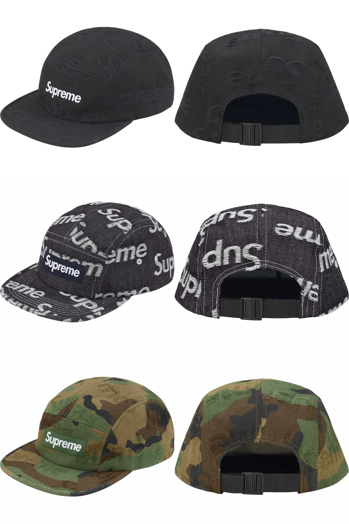 綿100% 14オンスデニム製スプリーム キャンプキャップほつれ加工ジャカードロゴ柄