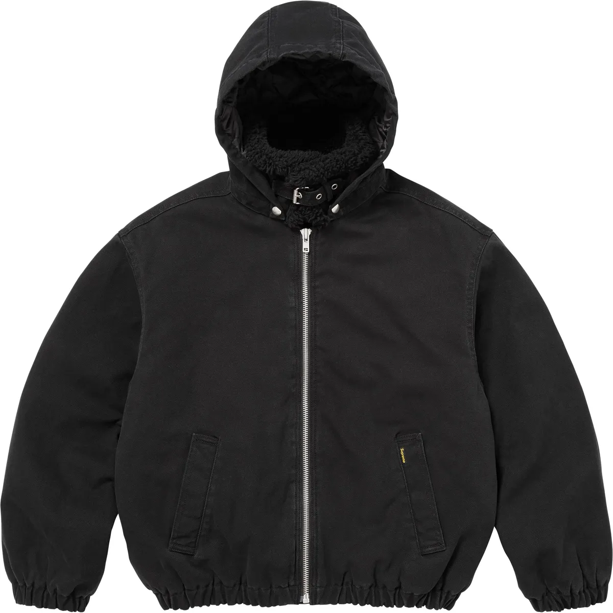 全綿キャンバス地に3Mシンサレート断熱材、フェイクシープスキン裏地、キルティング加工タフタ袖裏を採用。フルジップ開閉式で、前面下部にはウェルトハンドポケット、内側胸ポケット付き。バックル留めフェイクシープスキンカラーと取り外し可能なフード付き。袖口と裾はゴム仕様。背面に刺繍ロゴ入り