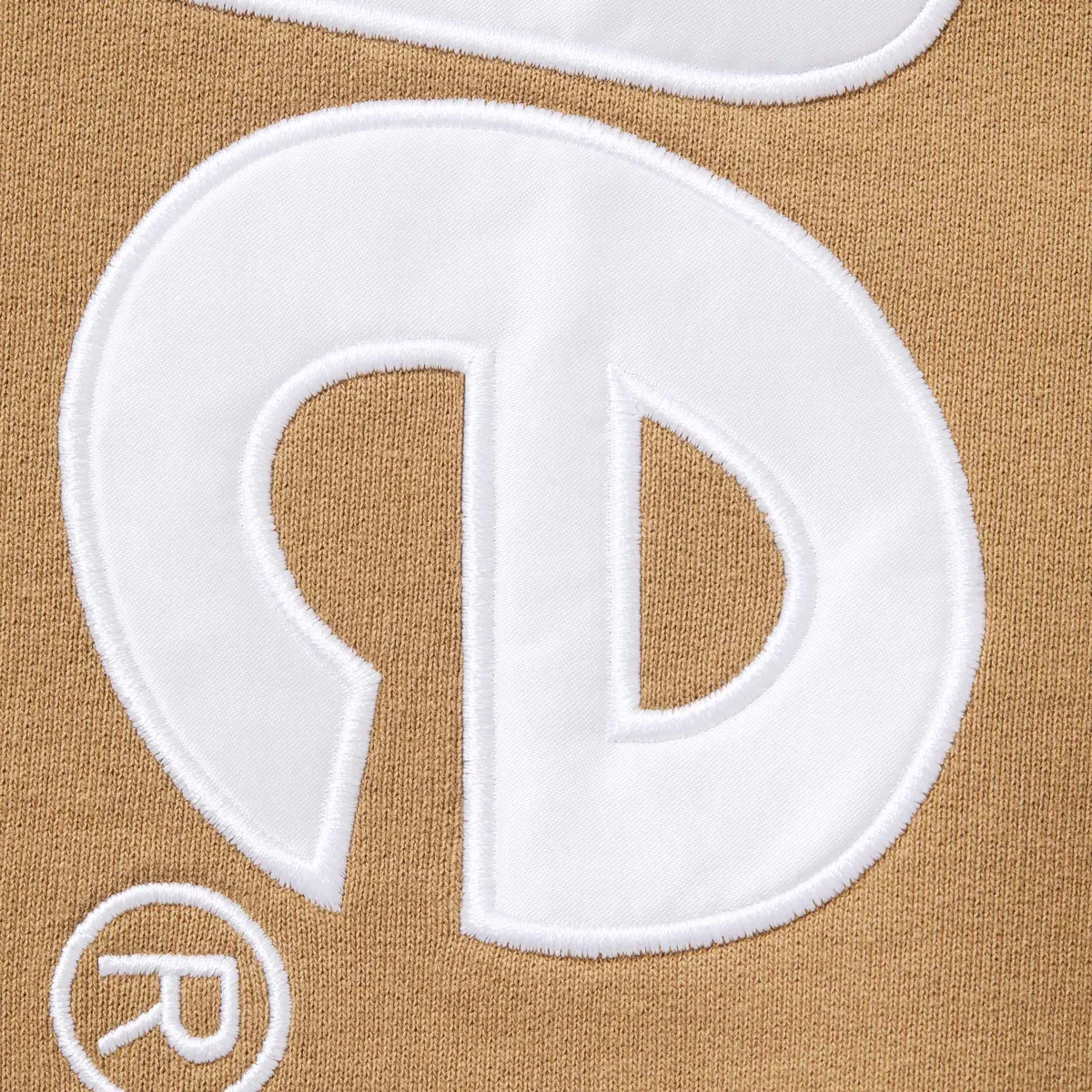 裏毛加工フリース素材にポーチポケット付き。背面にサテンロゴアップリケ