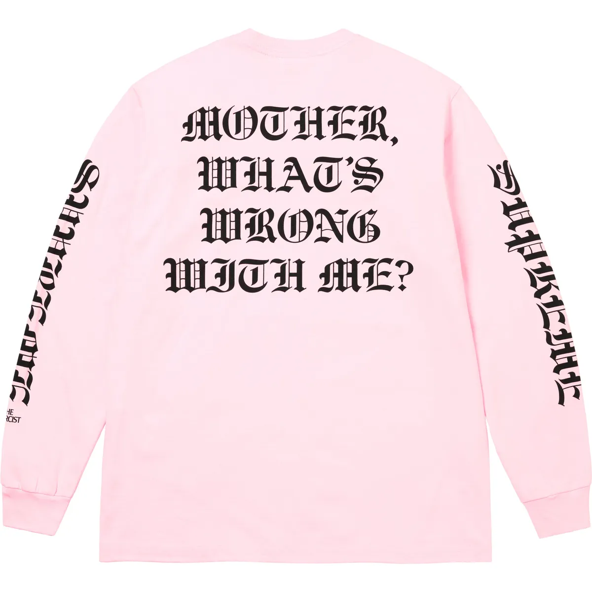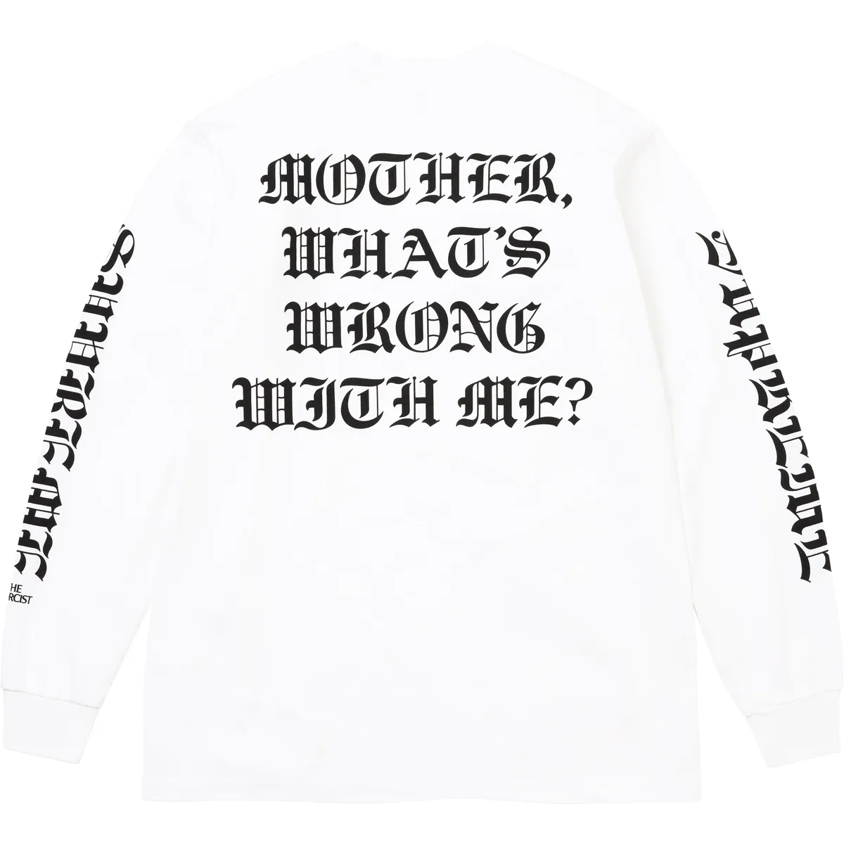 オールコットン製クラシック・シュプリーム長袖Tシャツ。前面と背面にプリントグラフィックを施し、袖にはプリントロゴを配しています