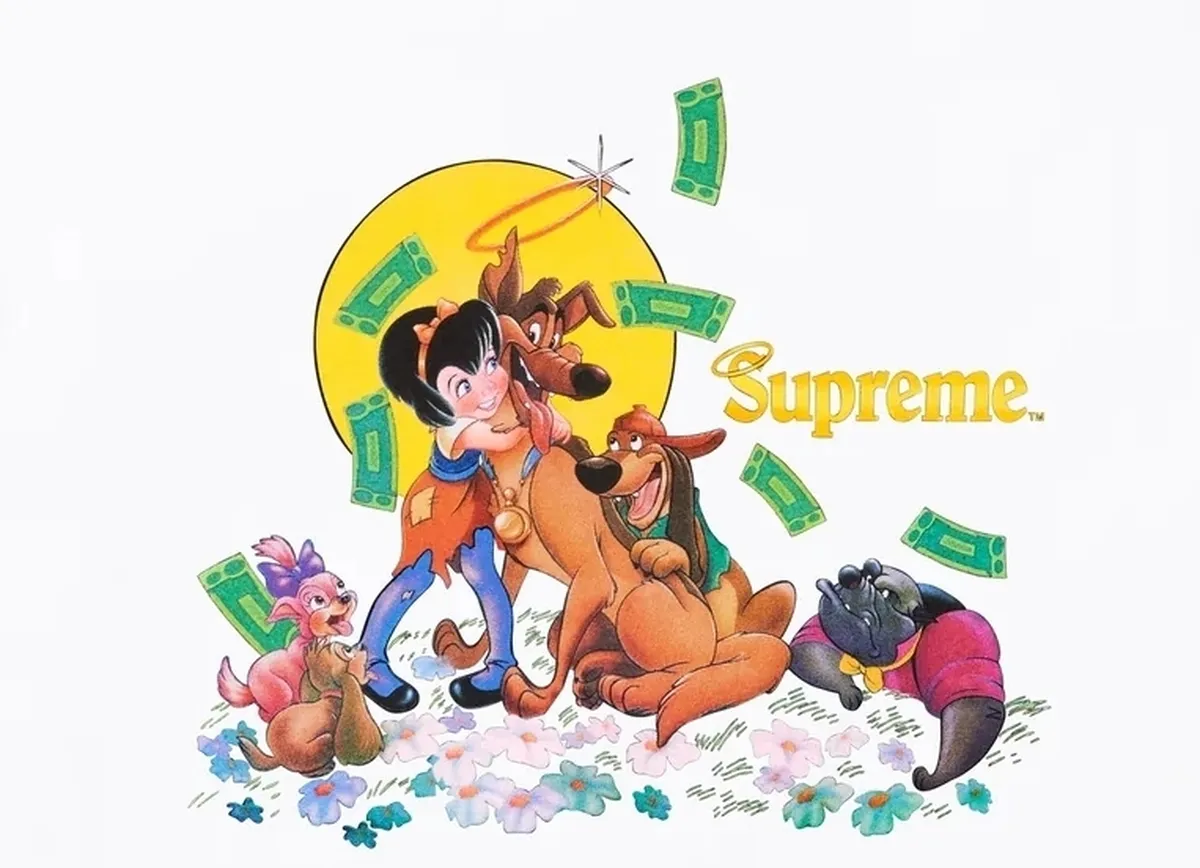 全面プリントのクラシックなコットン製シュプリームTシャツ。前面と背面にグラフィックプリントを施しています。アートディーラーによるオリジナルアートワーク