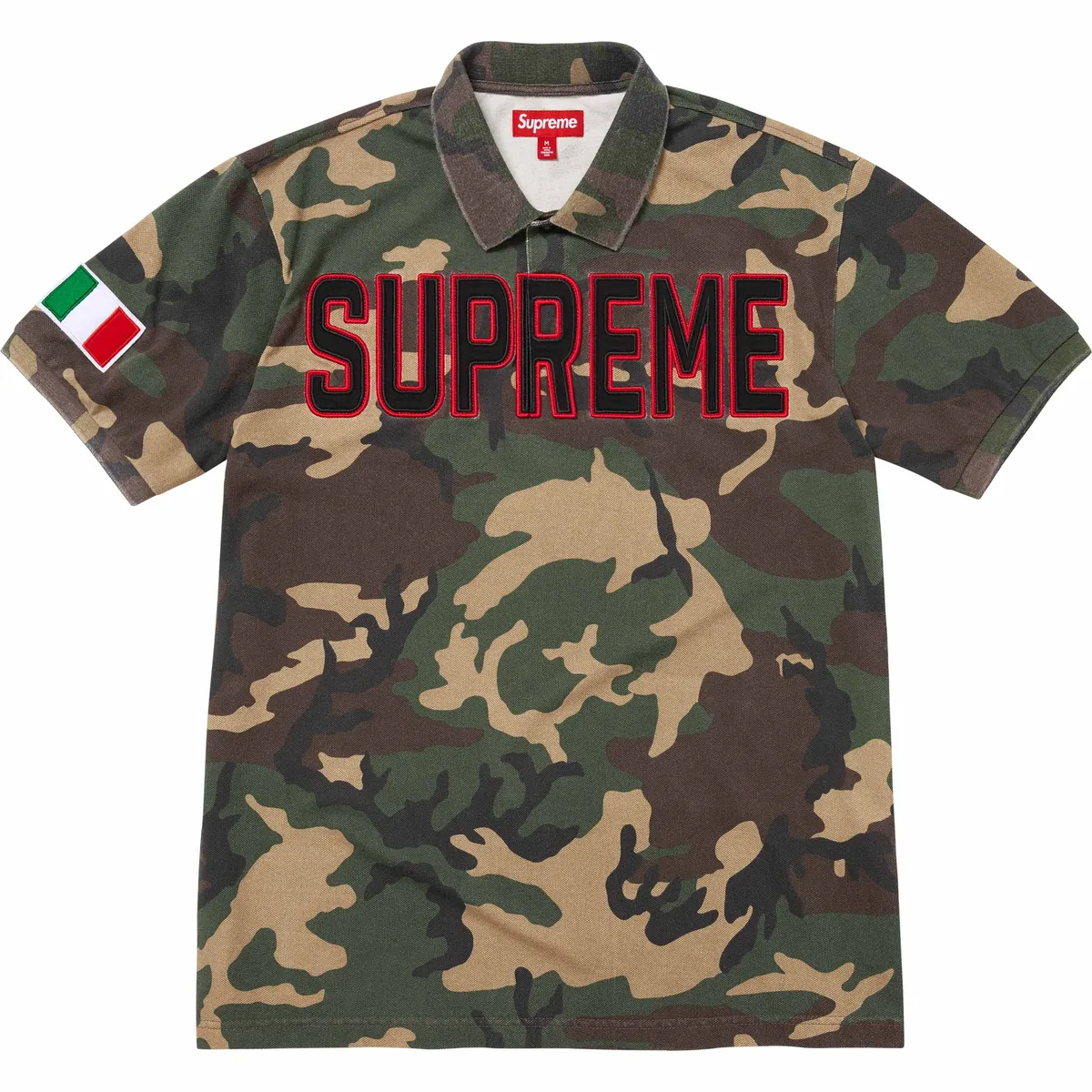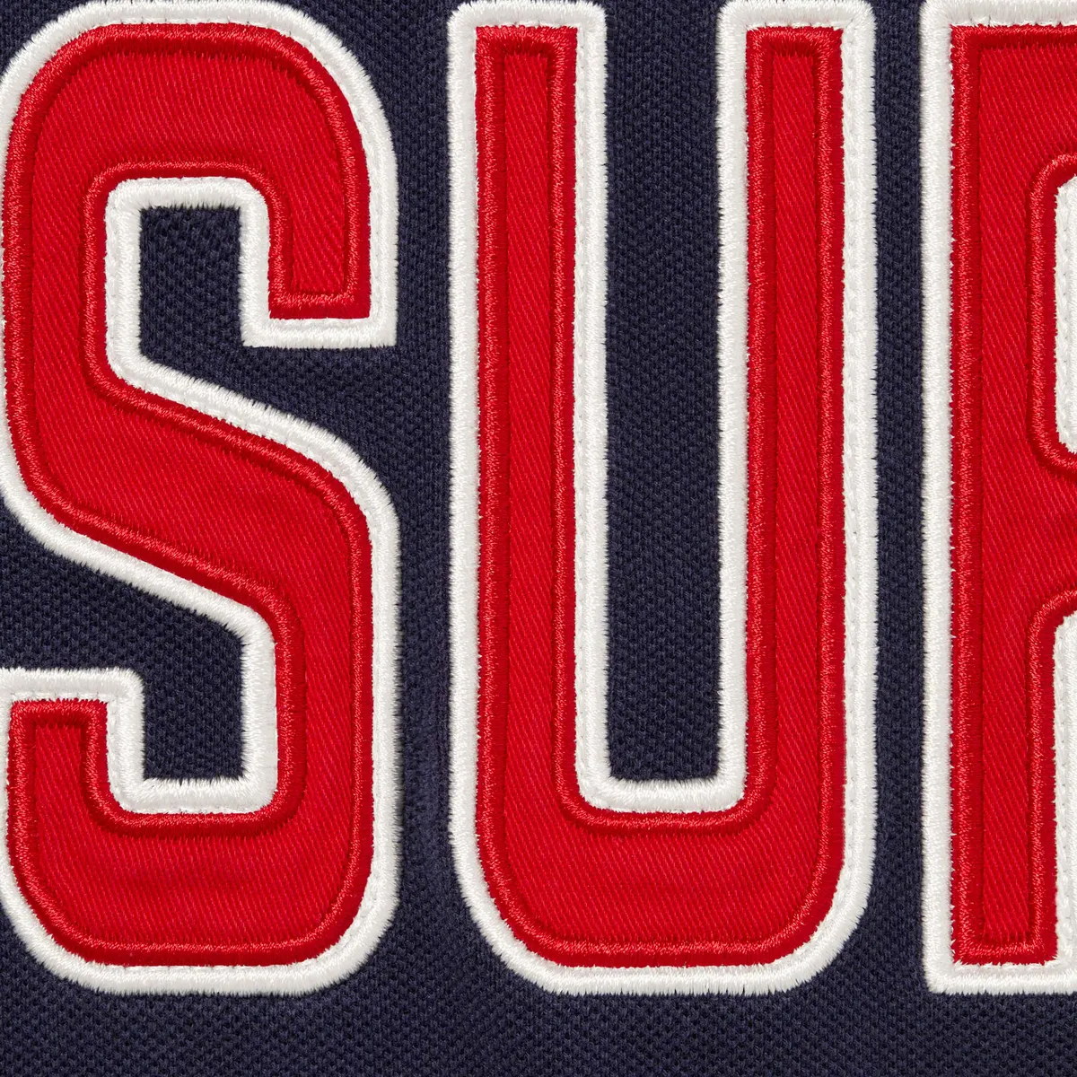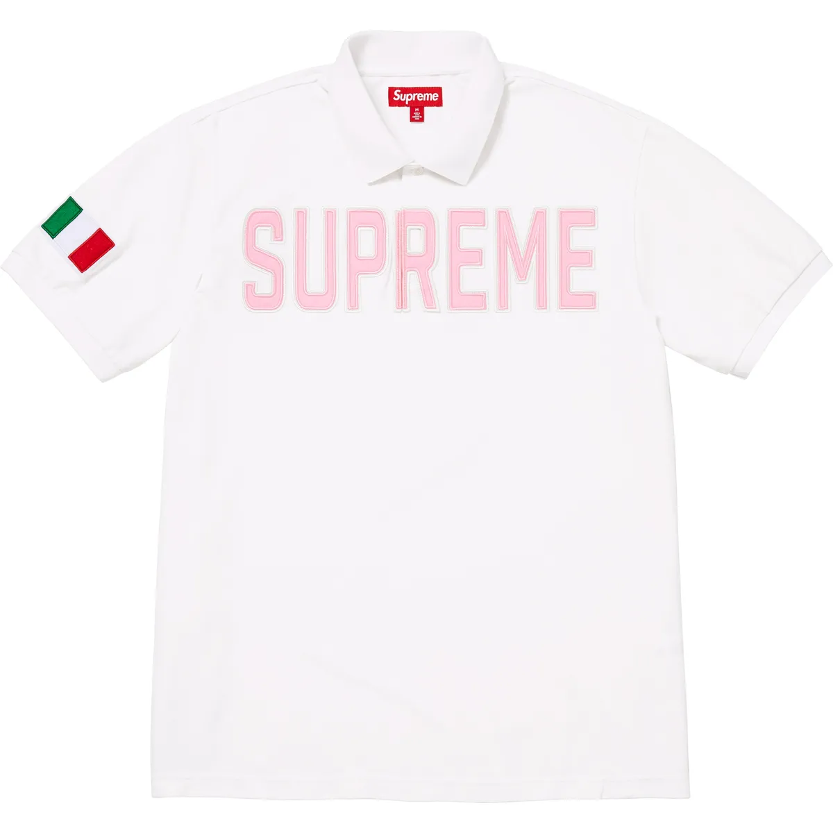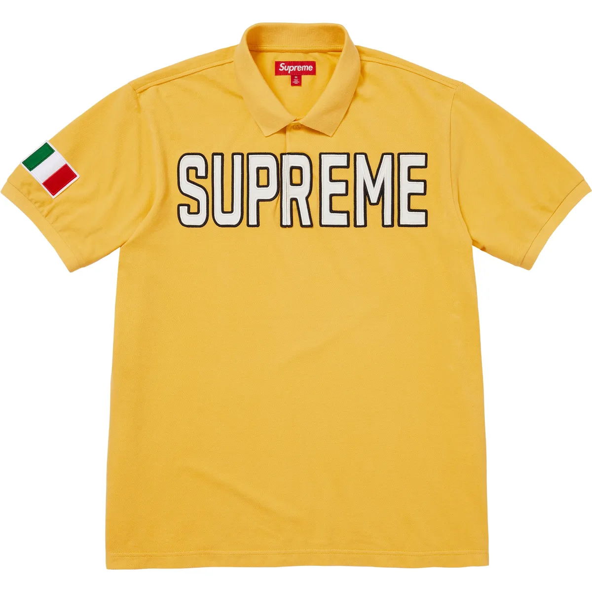 綿100%ピケ素材のポロシャツ。2ボタンプラケット仕様。胸元には綿ツイルのアップリケ袖にはフェルトパッチをあしらっています