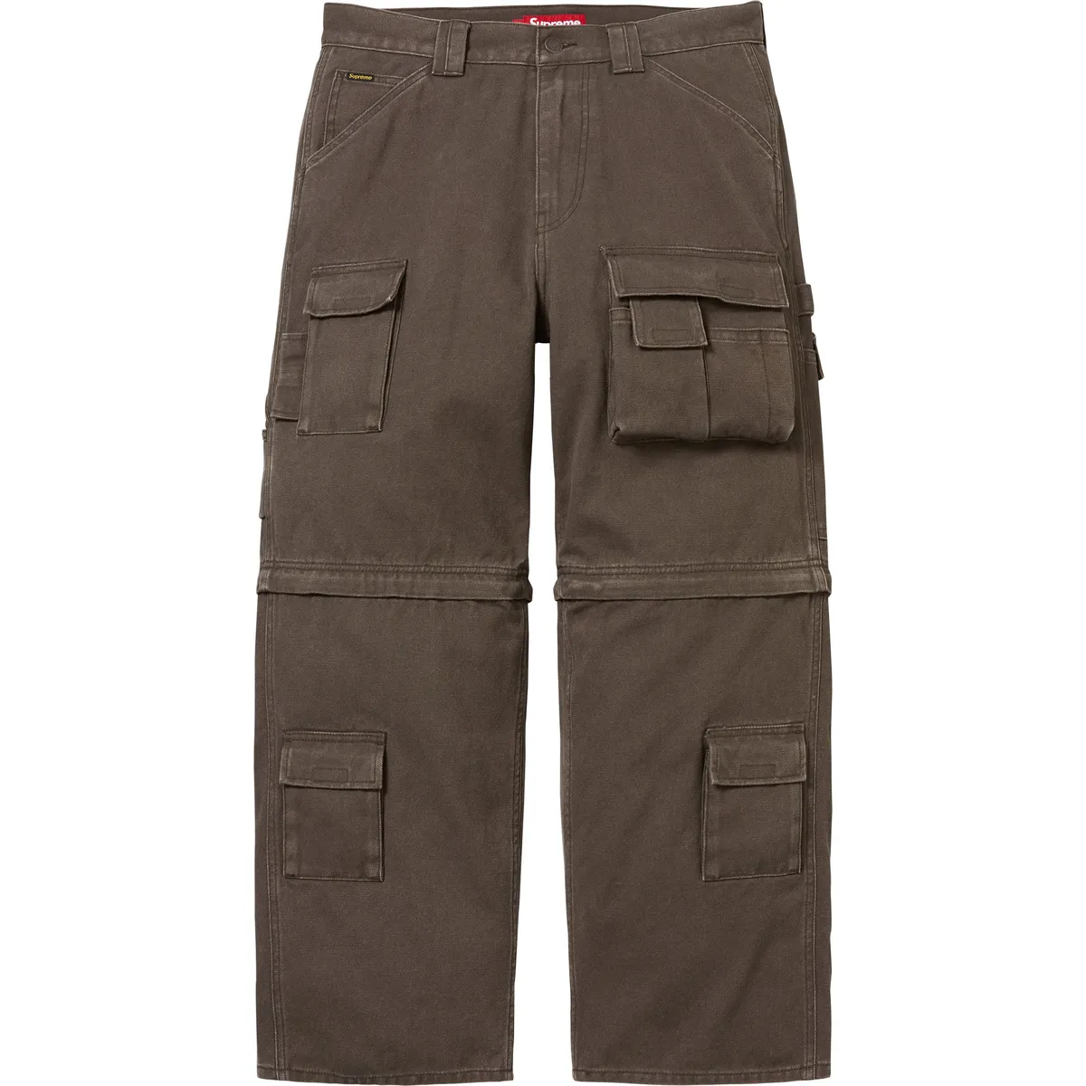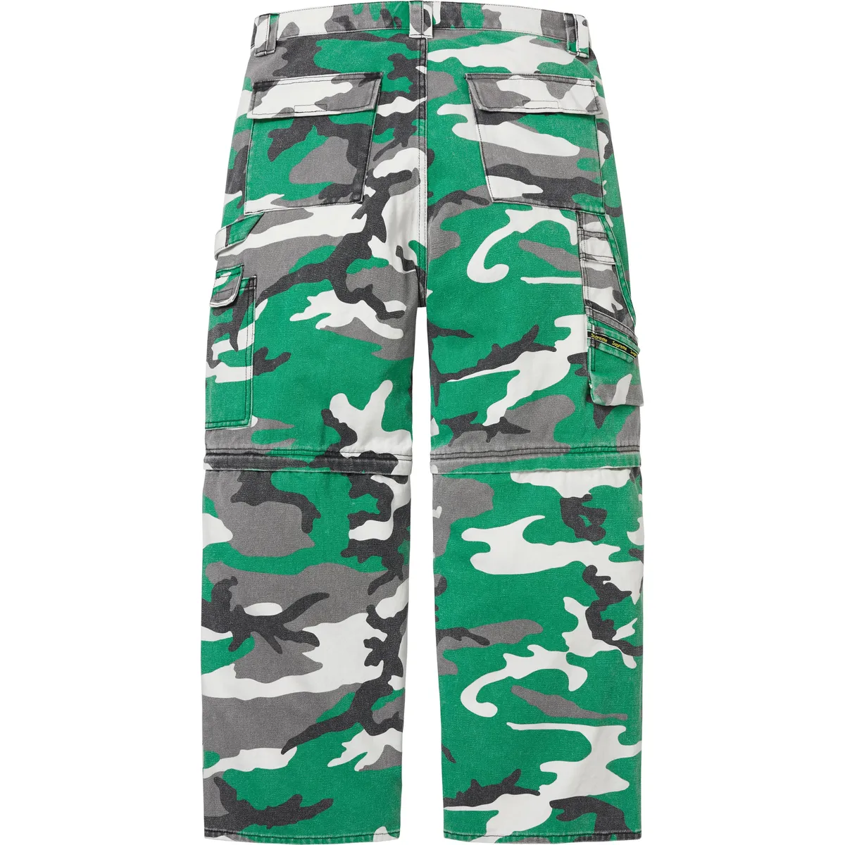 全綿キャンバス地。前面に斜めハンドポケット、腰部と太もも部分にベルクロフラップ付きカーゴポケット。ユーティリティスタイルで、ジップフライ、シングルコインポケット、ユーティリティポケット、左脚にハンマーループ付き(織りロゴテープ入り)。裾はジップオフ式でベルクロフラップ付きカーゴポケット付き